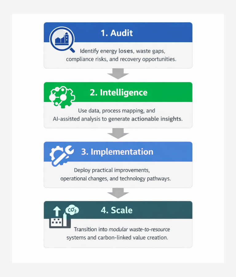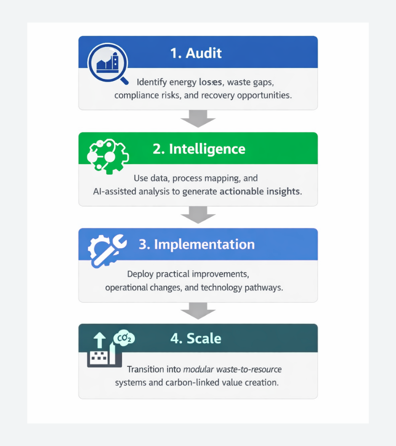 Transforming waste into energy, efficiency, and measurable climate value through integrated audits, intelligent systems, and scalable technologies.